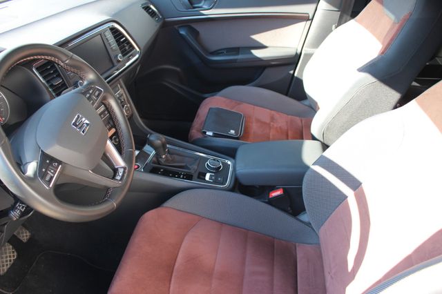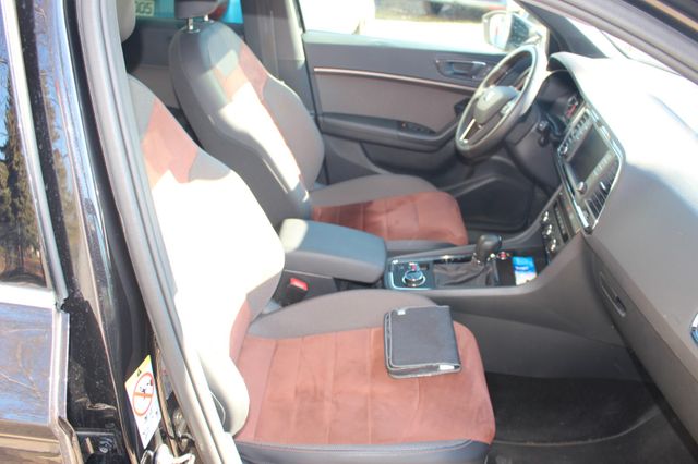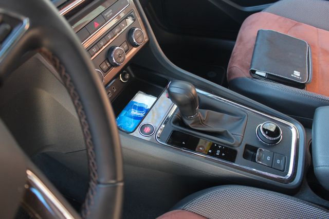Sonderausstattung: - Audio-Navigationssystem mit Touchscreen Farbbildschirm, Business-Paket Assistance, Full Link (MirrorLink, Apple CarPlay und Android Auto), Metallic-Lackierung - - Weitere Ausstattung: - 3. Bremsleuchte, Airbag Beifahrerseite abschaltbar, Airbag Fahrer-/Beifahrerseite, Antriebs-Schlupfregelung (ASR), AUX-IN-Anschluss und 2 x USB-Anschluss, Außenspiegel elektr. verstell-, heiz- und anklappbar mit Spiegelabsenkung und Welcome Light, Außenspiegel elektr. verstell-, heiz- und anklappbar, beide, Außenspiegel lackiert, Außenspiegel und Türgriffe außen in Wagenfarbe, Blinkleuchte in Außenspiegel integriert, Bordcomputer, Bremsassistent, Chrom-Paket, Dachhimmel schwarz, Doppeltonhorn, Einparkhilfe hinten, Einstiegsleisten beleuchtet, Fahrassistenz-System: Berganfahr-Assistent (Hill-Holder), Fahrassistenz-System: Fahrprofilauswahl (SEAT Drive Profile), Fahrassistenz-System: Müdigkeitserkennung, Fahrassistenz-System: Umfeldbeobachtungssystem (Front assist) mit City-Notbremsfunktion, Fensterheber elektrisch vorn + hinten, Fußraumbeleuchtung vorn, Gepäckraumabdeckung / Rollo, Handschuhfach beleuchtet, Heckleuchten LED, Innenausstattung: Chrom-Applikationen, Innenraumlicht-Paket LED, Isofix-Aufnahmen für Kindersitz, Karosserie: 5-türig, Klimaanlage Climatronic 2-Zonen, Knieairbag Fahrerseite, Komfortsitze, Kopf-Airbag-System, Kopfstützen hinten (3-fach), Kopfstützen vorn, Lendenwirbelstütze Sitz vorn links, verstellbar, Lendenwirbelstütze Sitz vorn rechts, verstellbar, Lendenwirbelstütze verstellbar, Lenkrad (Sport/Leder) mit Multifunktion, Licht- und Sicht-Paket, LM-Felgen, Mittelarmlehne hinten, Mittelkonsole vorn mit Mittelarmlehne, Becherhalter, Ablagebox und Luftdüsen hinten, Motor 1,5 Ltr. - 110 kW 16V TSI ACT, Otto-Partikelfilter (OPF), Parkbremse elektrisch, Radstand 2638 mm, Reifen-Reparaturset, Reifenkontroll-Anzeige, Rückfahrkamera, Rücksitzlehne klappbar, Rücksitzlehnen umklappbar mit Fernentriegelung im Kofferraum, Schadstoffarm nach Abgasnorm Euro 6d-TEMP, Schalt-/Wählhebelgriff Leder, Scheinwerfer LED, Schließ-/Startsystem Kessy, Seitenairbag, Seitenscheiben hinten und Heckscheibe abgedunkelt, Sitz vorn links höhenverstellbar, Sitz vorn rechts höhenverstellbar, Sitzbezug / Polsterung: Leder / Alcantara, Start/Stop-Anlage, Stau-/Ablagefach unter Sitz vorn links, Steckdose (12V-Anschluß) vorn, Verglasung getönt, Verzurrösen Koffer-/Laderaum, Wärmeschutzverglasung - - , Seitenscheiben hinten und Heckscheibe abgedunkelt - Ausstattung: - Abgedunkelte Scheiben, Armlehne, Beheizbare Frontscheibe, Elektr. Fensterheber, Elektr. Seitenspiegel, Elektr. Seitenspiegel anklappbar, Innenspiegel autom. abblendend, Lederlenkrad, Lordosenstütze, Sitzheizung, Zentralverriegelung, Berganfahrassistent, Bordcomputer, Multifunktionslenkrad, Schaltwippen, Servolenkung, Android Auto, Bluetooth, Apple CarPlay, Freisprecheinrichtung, Navigationssystem, Touchscreen, USB, Sommerreifen, Winterreifen, Leichtmetallfelgen, Winterpaket - - Tuner/Radio: - Tuner/Radio - - Geschwindigkeitsregulierung: - Tempomat - - Anhängerkupplung: - Anhängerkupplung schwenkbar - - Klimatisierung: - Klimaautomatik, ABS, Elektr. Wegfahrsperre, ESP, Isofix, Lichtsensor, Nebelscheinwerfer, Notbremsassistent, Regensensor, Reifendruckkontrolle, Start/Stopp-Automatik - - Airbags: - Front-, Seiten- und weitere Airbags - - Tagfahrlicht (Art): - Tagfahrlicht - - Hauptscheinwerfer: - LED-Scheinwerfer - - Pannenhilfe: - Pannenkit - - Einparkhilfe: - Kamera, Hinten, Sportsitze - - Innenausstattung: - Alcantara -